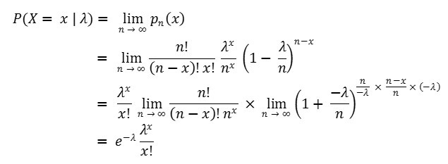 ② the limit of binomial distribution (n → ∞): Poisson distribution