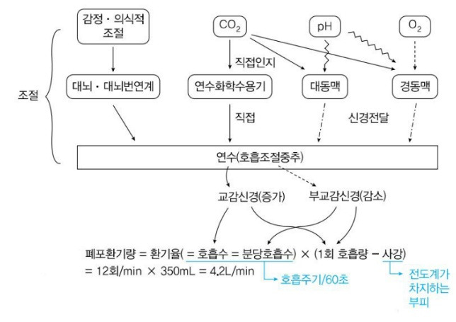 ① Exhalation: Gas exchange between the atmosphere and the respiratory tract (ventilation)