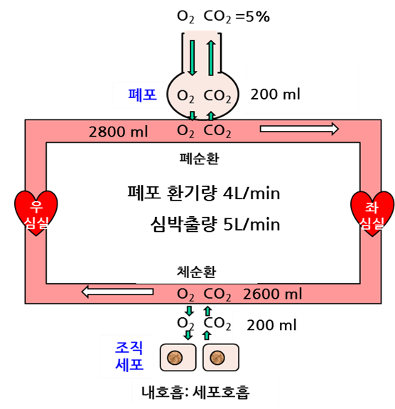 ① Lung blood volume: 0.5 L (10–12% of total blood).